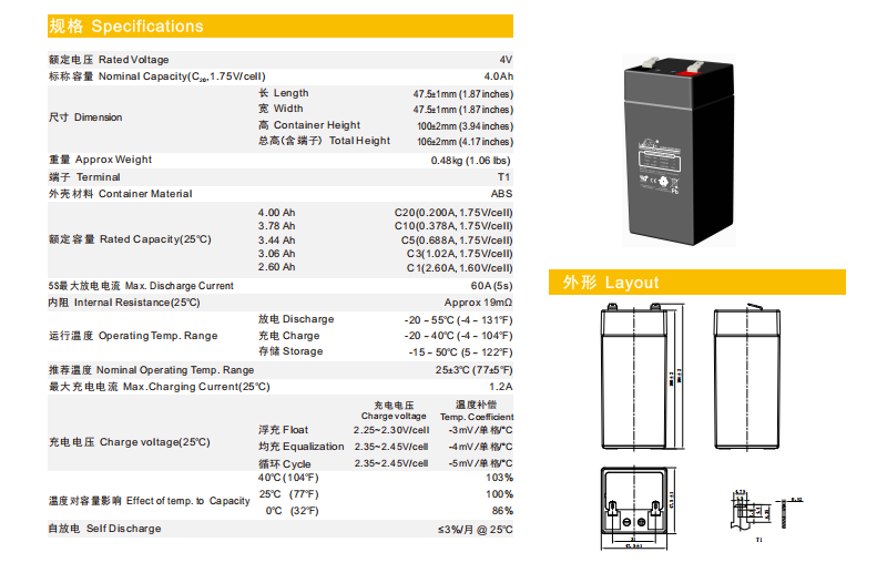 型号:DJW4-4.0(4V4.0Ah)