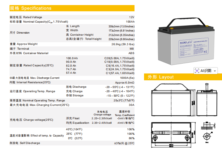 青羊理士蓄电池DJM12200S电池内阻参数内阻Approx 6.0mΩ
