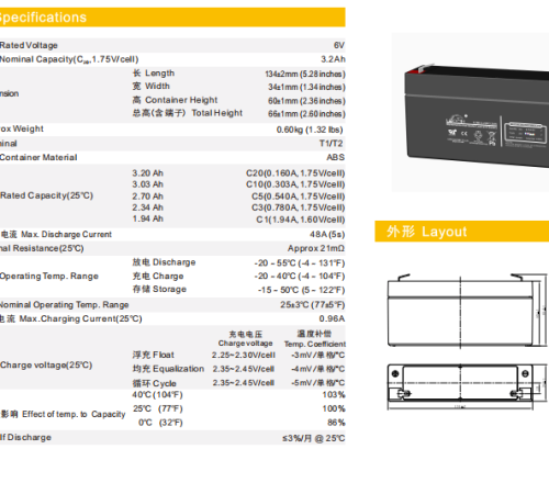 理士DJW6-3.2(6V3.2Ah)蓄电池*电信*太阳能系统*电子开关系统*通讯设备:基站,PBX,CATV,WLL,ONU,STB,无绳电话等*后备电源:UPS,ECR,电脑后备系统,Sequence,ETC等*紧急设备:应急灯,火警盗警,防火闸主电源*通讯设备:收发器*电力控制机车:采集车,自动运输车,电动轮椅,清洁机器人,电动车等*机械工具启动器:剪草机,hedge trimmers,无绳