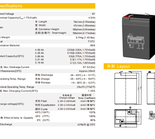 理士DJW6-4.5(6V4.5Ah)蓄电池理士蓄电池用途:通信Telecommunications • 储能、电力Energy Storage、Electric Systems • 应急电源、直流电源 Emergency Power Supply、 DC Power Supply • 医疗、电子设备 Medical、Electronic Equipment • 紧急照明、安防Emer