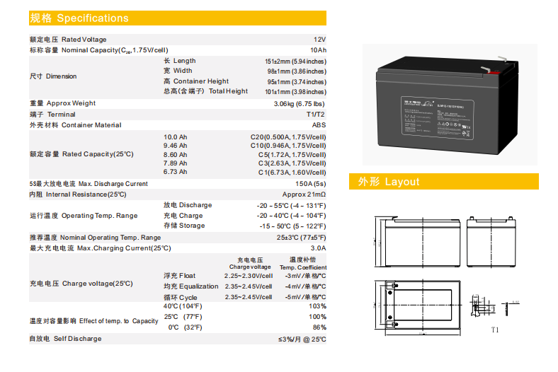 型号:DJW12-10(12V10Ah)