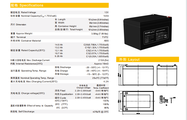 型号:DJW12-14(12V14AH)